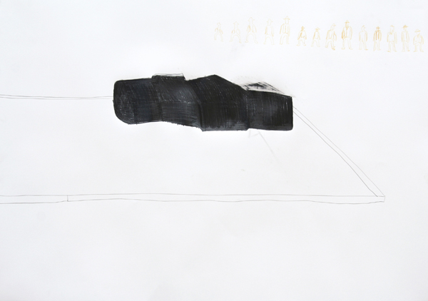 Bunkerranch mit Cowboys | 2006 Bleistift,Farbstift auf Papier | 70 x 100 cm pencil, coloured pencil on paper | 27,5 x 39,4 inches